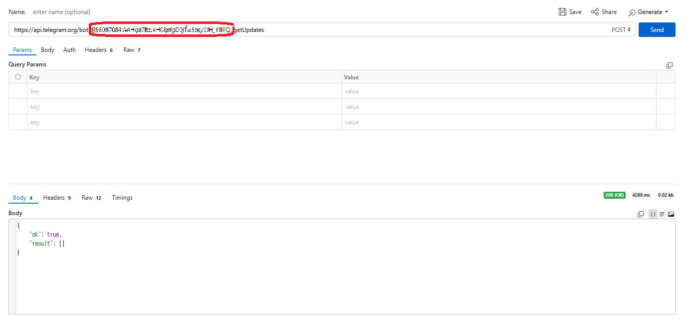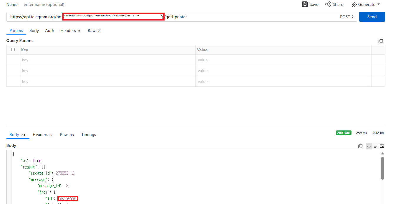 다음의 주소에 5번에서 얻은 토큰값을 넣고 전송합니다.