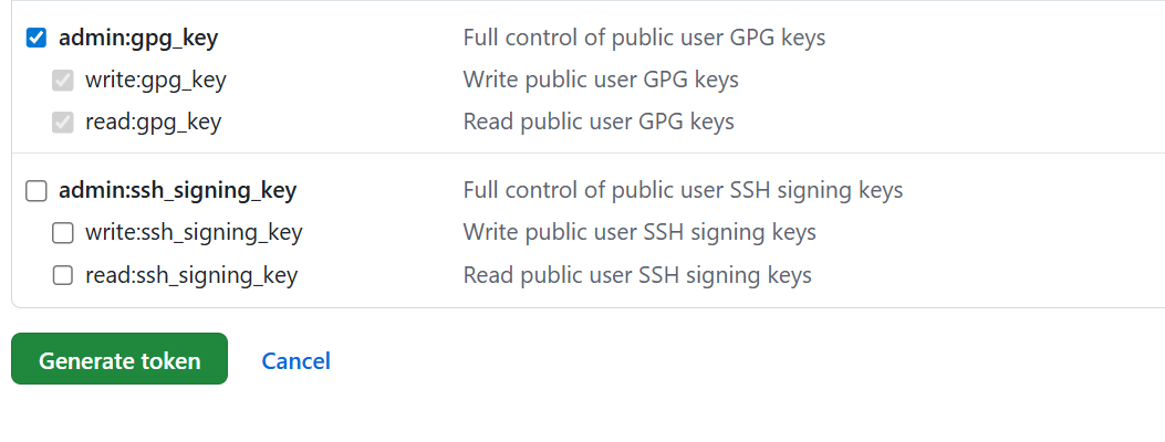- 권한 repo , write:packages , delete:packages , admin:org , gist , admin:gpg_key